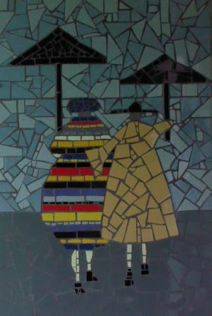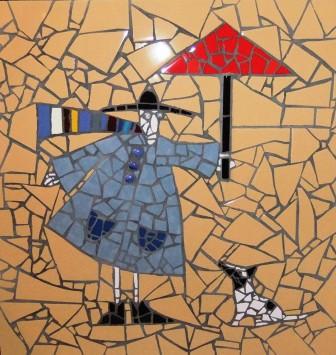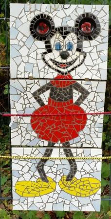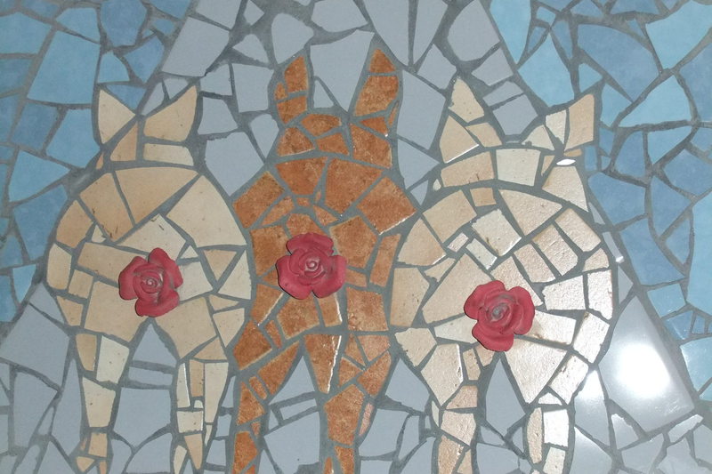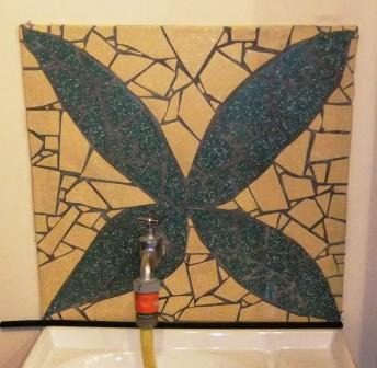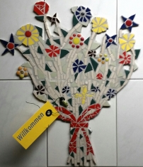 Diese Werke habe ich direkt an die Wand oder auf wasserfeste Platten angefertigt. Die Mosaiektableaux können draußen hängen. Im Winter würde ich aber empfehlen Sie ins Haus zu stellen.
